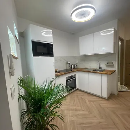 Tak, ten apartament wyposażony jest w pełnowymiarową kuchnię z lodówką, czajnikiem i piekarnikiem.